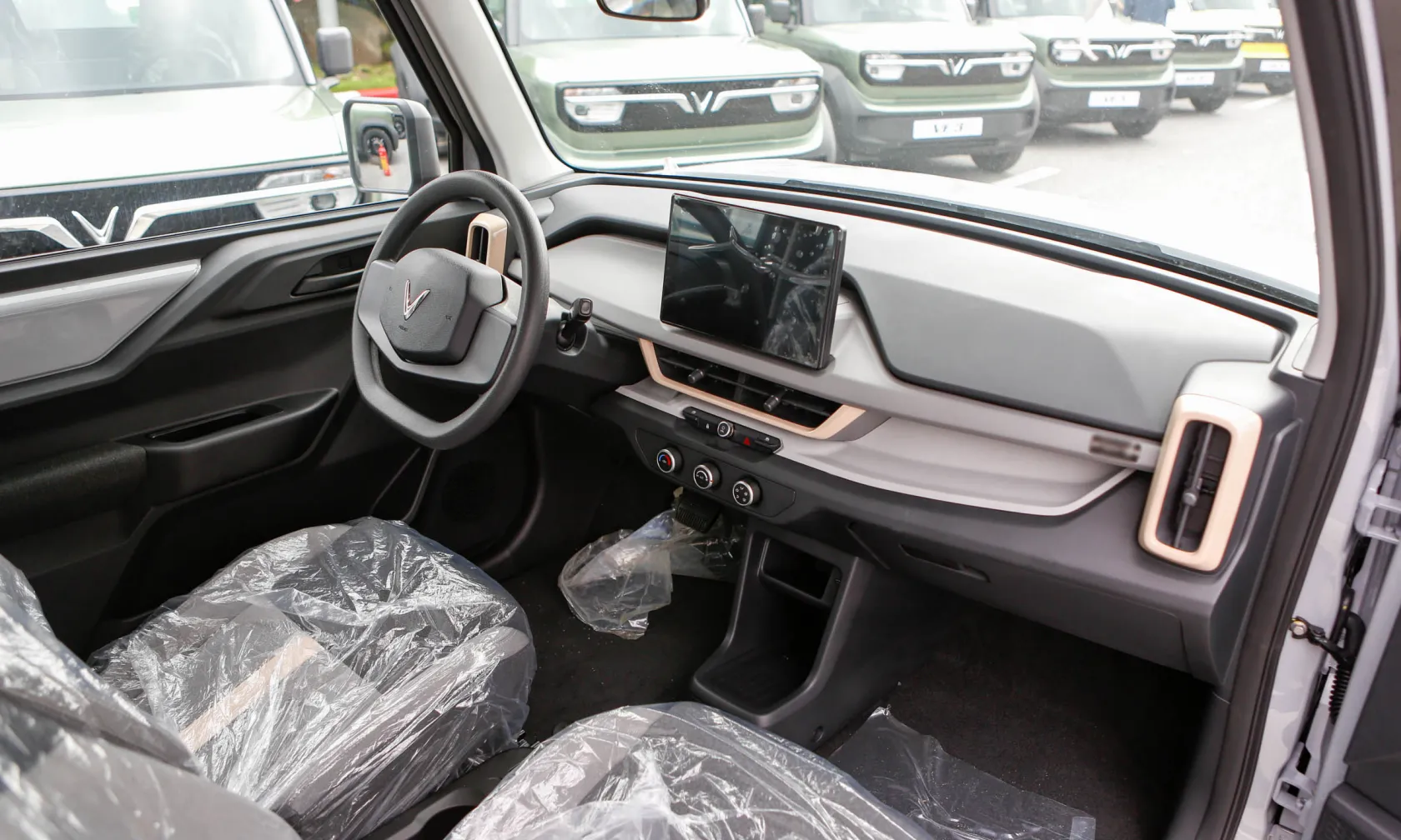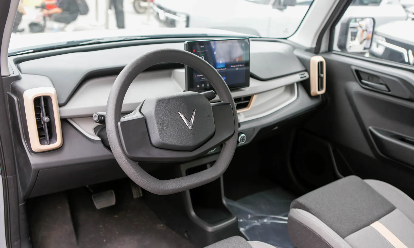 Khoang nội thất VinFast VF 3 được phát triển theo triết lý tối giản song hiện đại và có phần cá tính với các chi tiết hình học như cửa gió điều hòa hai bên bảng táp-lô, vô-lăng D-cut 2 chấu... Điểm nhấn bên trong khoang lái VF 3 là màn hình trung tâm 10 inch, nơi thực hiện thao tác các tính năng trên xe.