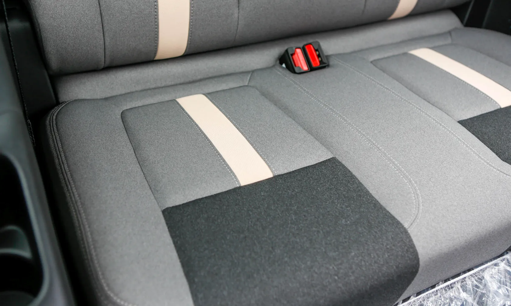 Xe có kết cấu 2 hàng ghế, 4 chỗ ngồi. Ghế xe bọc nỉ, ghế trước chỉnh cơ 4 hướng. Hàng ghế sau có thể gập xuống, giúp gia tăng thể tích khoang hành lý từ 36 lít lên 285 lít.