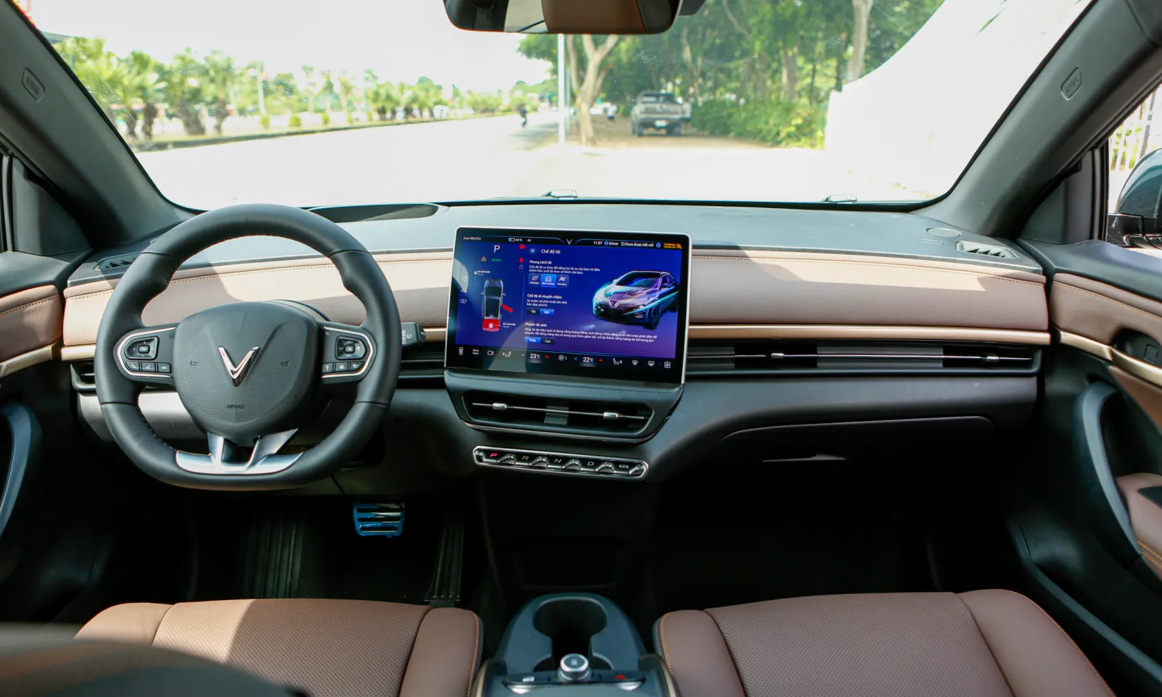 Không gian nội thất VinFast VF6 thiết kế theo phong cách tối giản, tiện dụng nhưng không kém phần sang trọng.