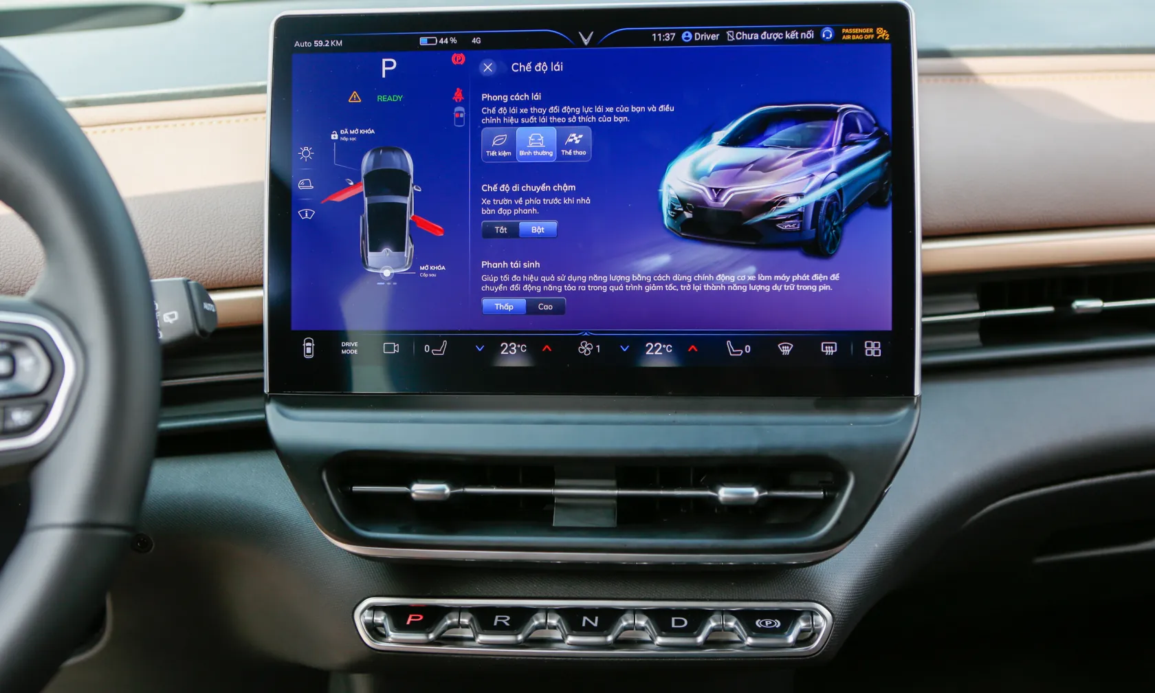 Điểm nhấn tại khu vực táp-lô chính là màn hình giải trí trung tâm kích thước lớn, hướng hẳn về phía người lái. Phía dưới là các nút điều khiển chức năng.
