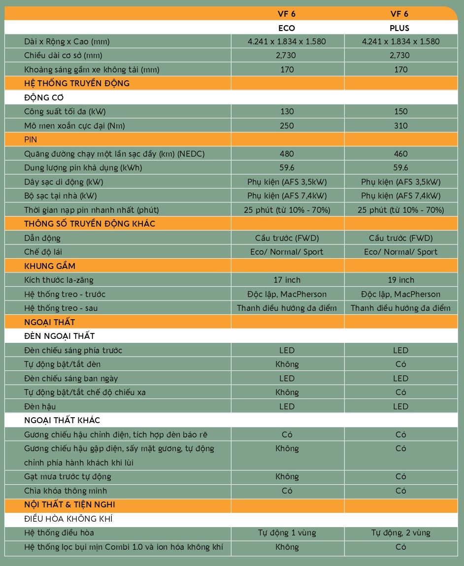 | VinFast VF 6 Eco + Pin: | 694.000.000 ₫ đ |