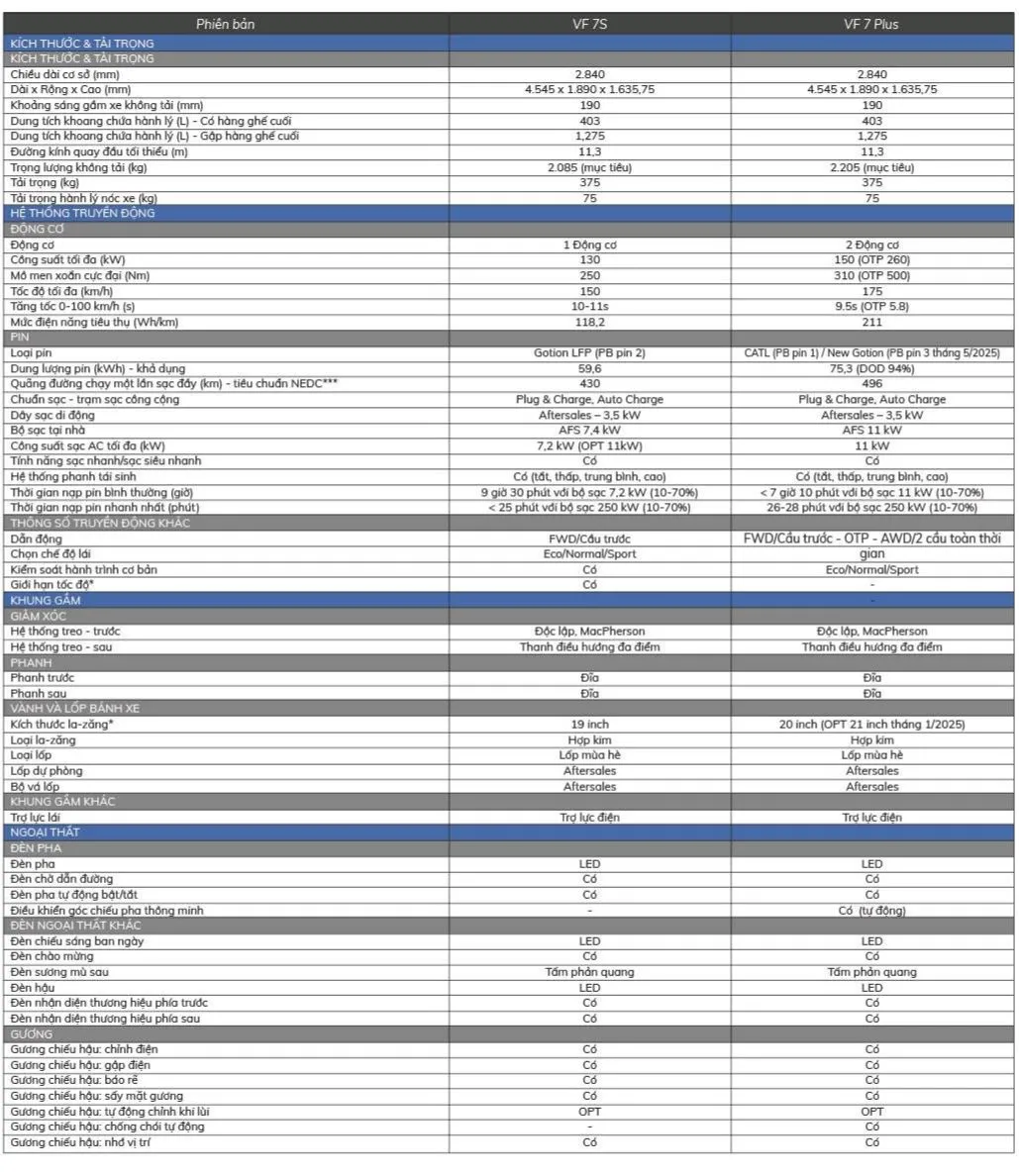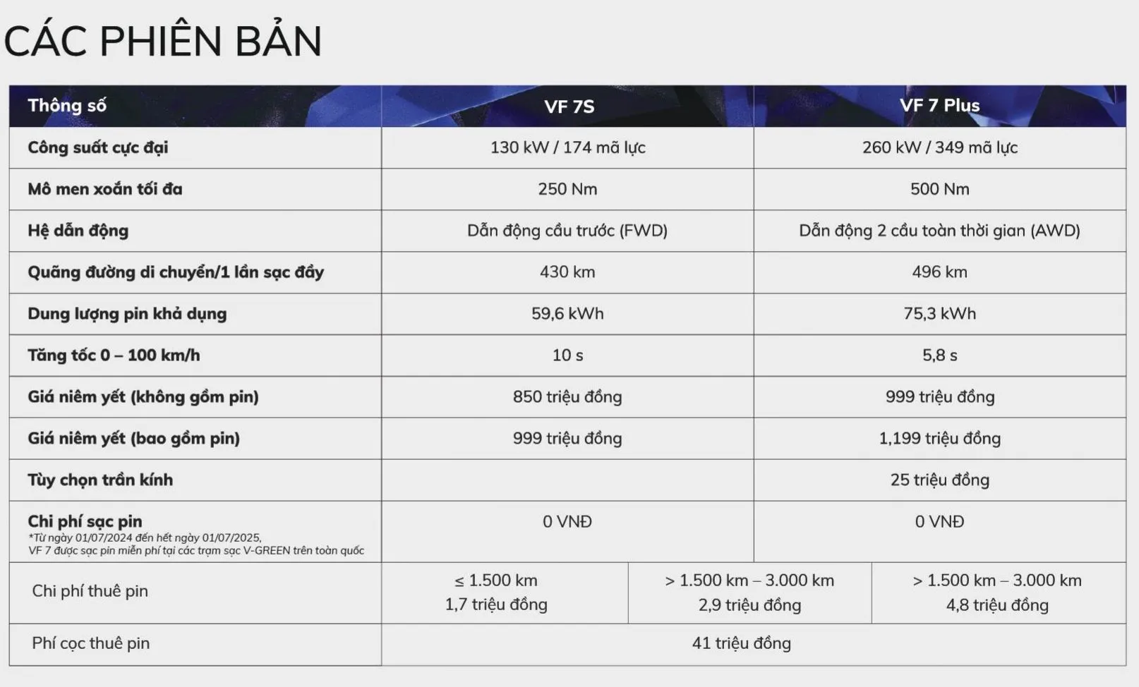 | VinFast VF7 Plus Trần Kính + Pin: | 1.019.000.000 ₫ đ |